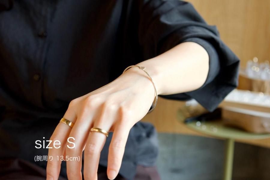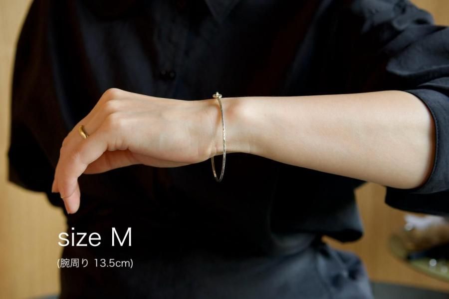 シルバーの丸線の全体を叩き上げて作ったブレスレットです。