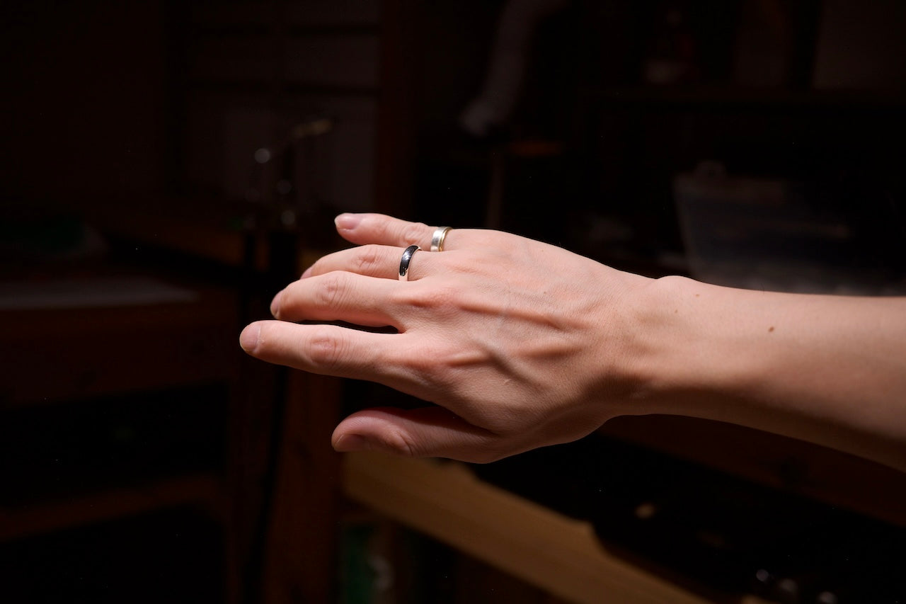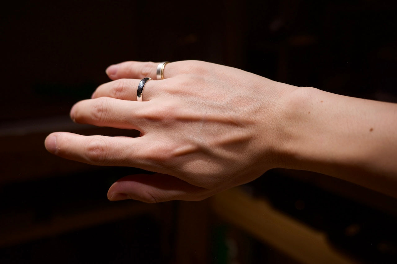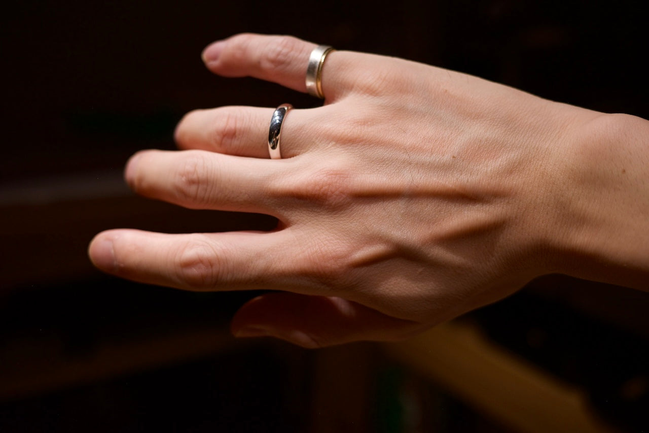 シルバーで製作した外側が丸い指輪です。