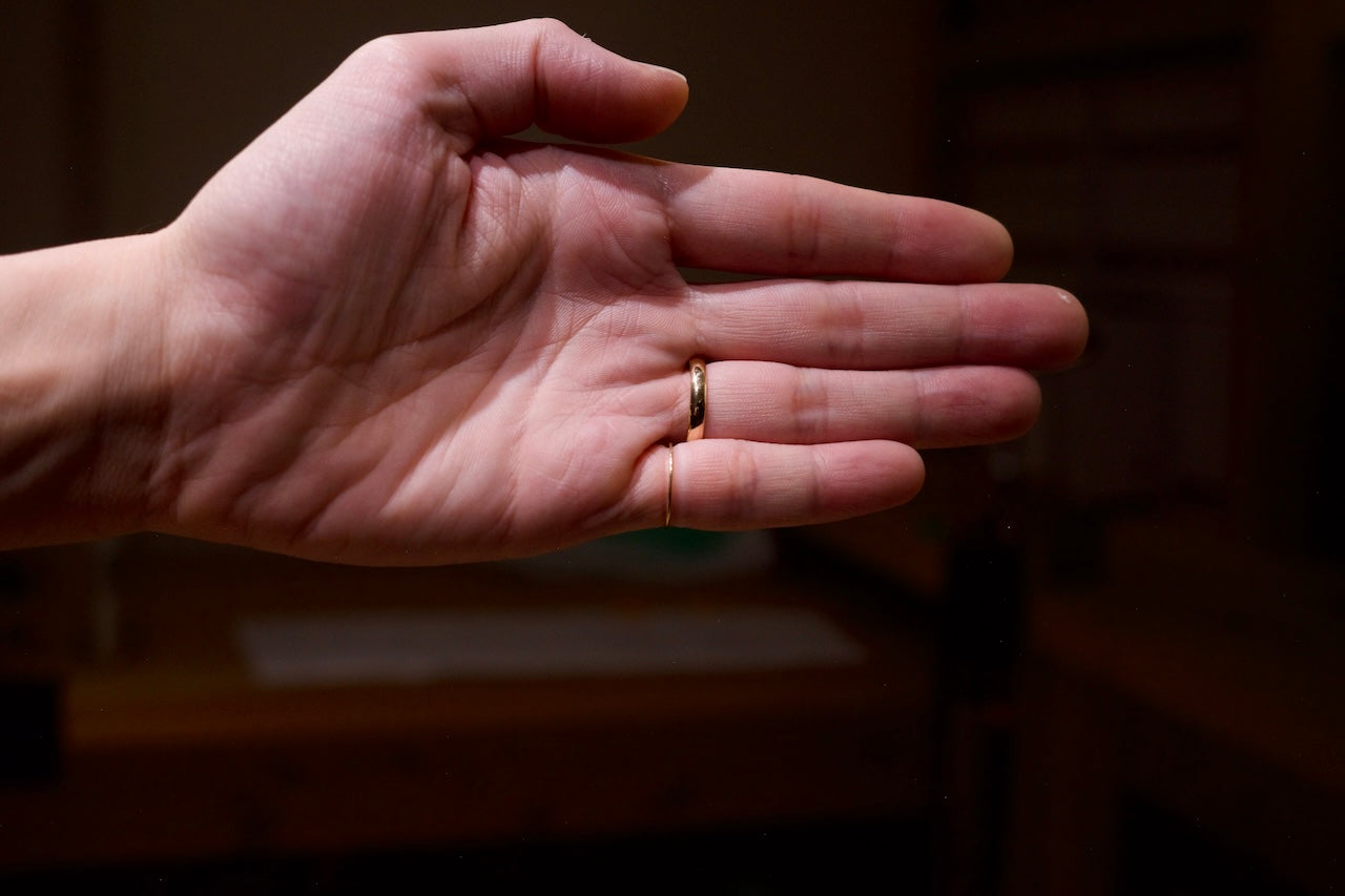 ファッション性や大胆な個性あるデザインではなく、着け心地が良く、年を重ねておじいちゃん、おばあちゃんになっても素敵に着けられるシンプルな指輪です。