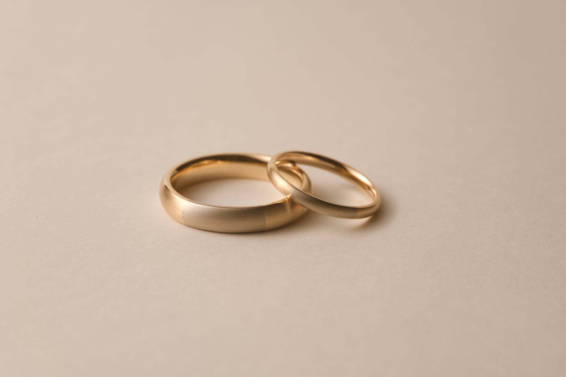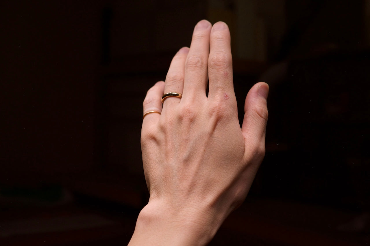 3.8mmもの太さになると存在感がグッと増してカジュアルな印象になります。太さが増した分、高さも増えるため、手を握った際は隣の指に当たりやすくなりますが、素材の質量が増えるので金の重厚感を感じられる指輪です。また長い年月を共に過ごしても耐え抜く耐久性があります。お直しによる耐久性の低下も少なく長くご愛用いただける太さでもあります。