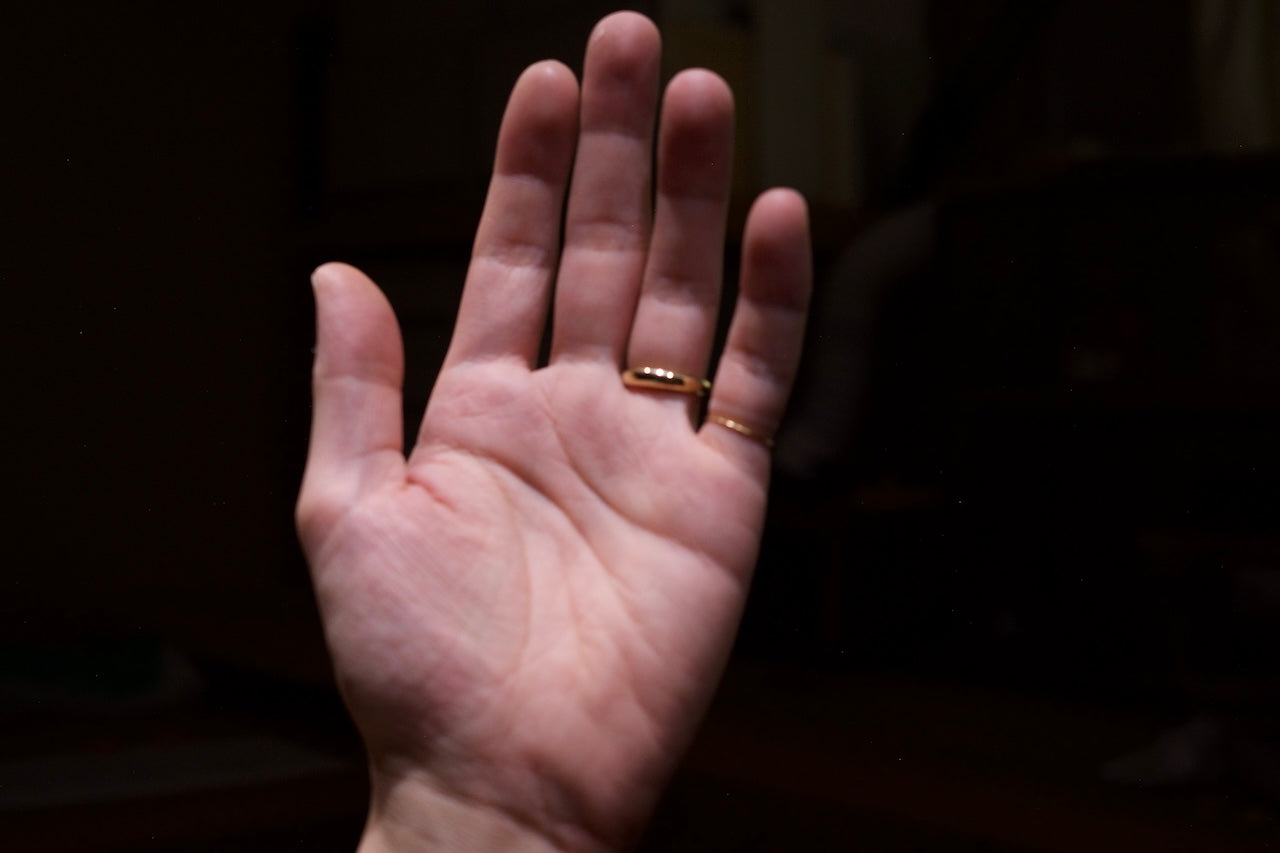 太さの割に高さを控えめにしているので、着けた時に隣の指と干渉しづらく、着けっぱなしにしていても心地の良い形状になっています。