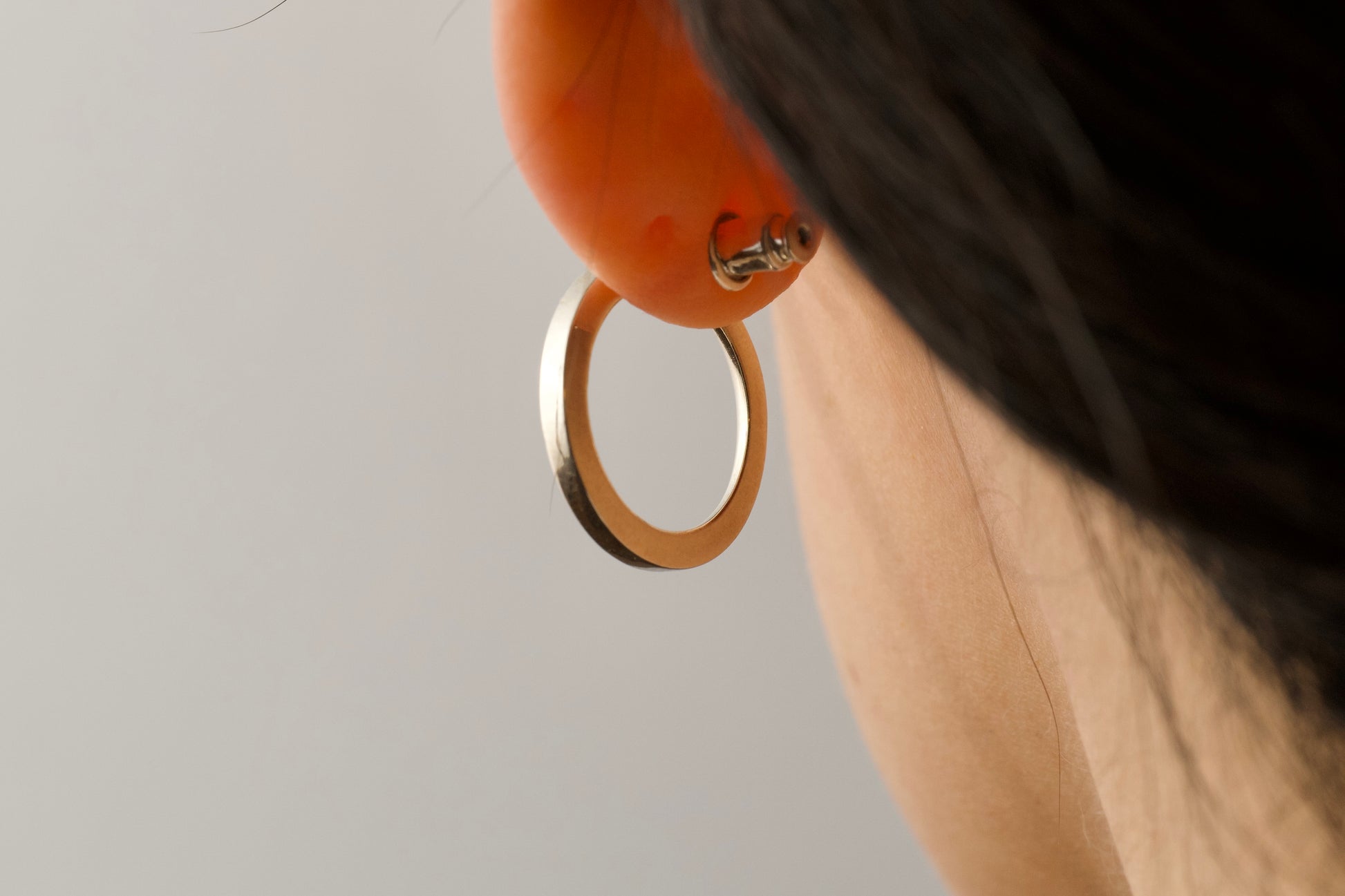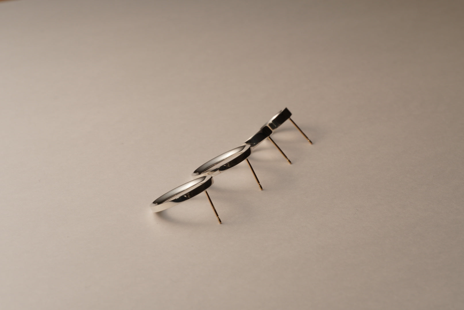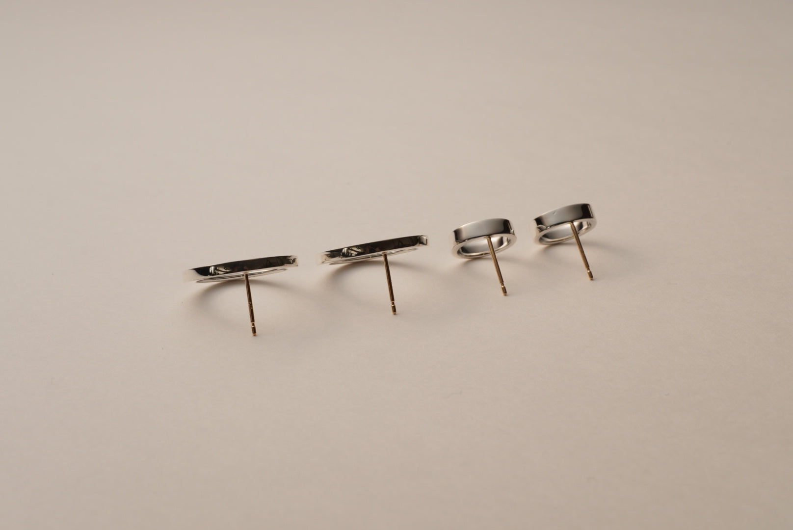 ポストは通常シルバーですが、オプションで18金ポストに変更可能です。キャッチも専用の18金製のものが付属します。