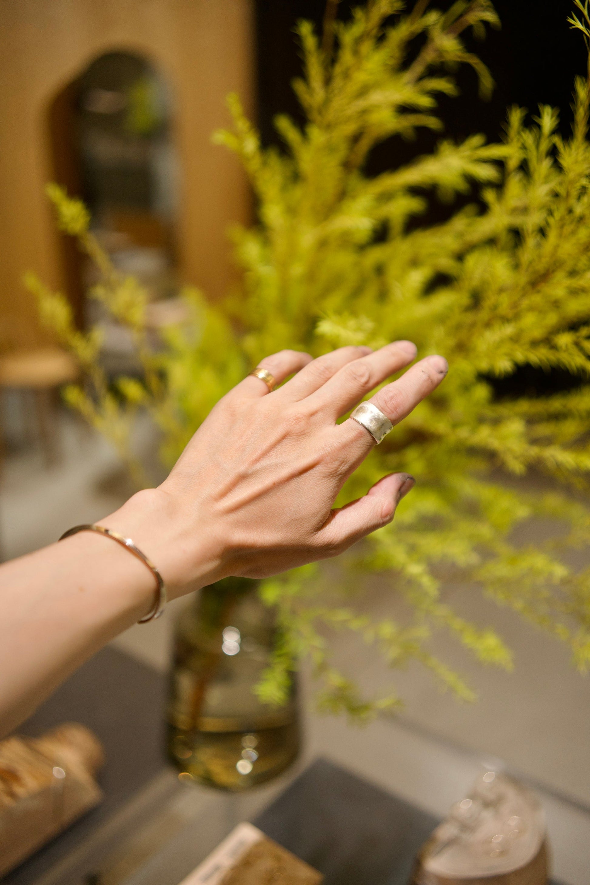 緩やかな凹凸に光が当たるたびに陰影が生まれ、豊かな表情を指元に映し出します。