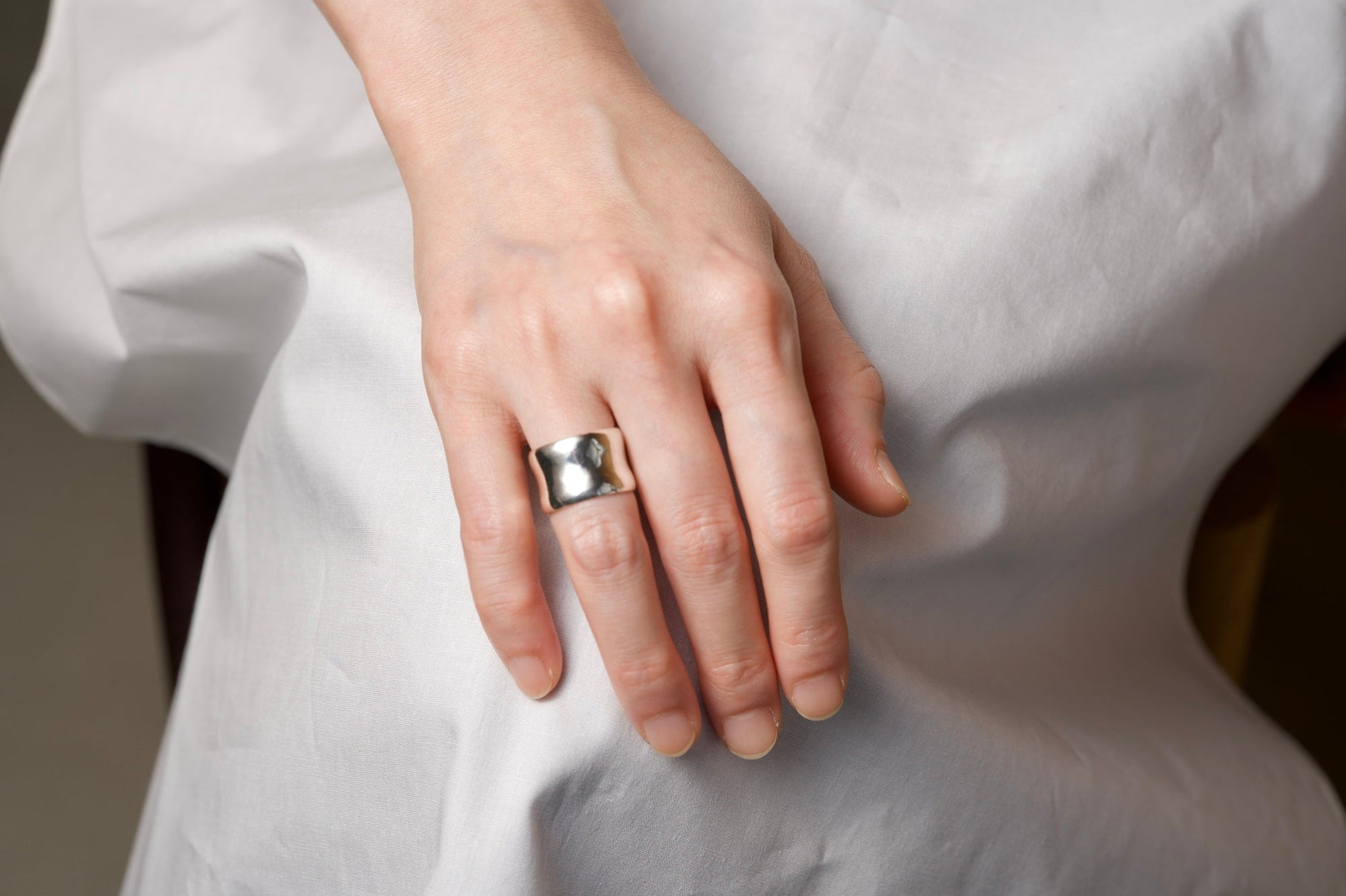 開口部があるため、幅広でもつけ心地の良い指輪になっています。